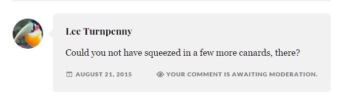 Nothing I haven’t come across before, and so, rolling my eyes, I was driven to comment: